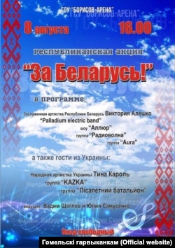 7 жніўня сайт барысаўскай раённай газэты «Адзінства» паведаміў пра перанос канцэрту «За Беларусь» 8 жніўня з «Барысаў-Арэны» на цэнтральную плошчу горада. Пройдзе яно з 19.00 да 23.00.