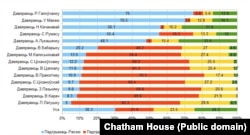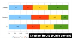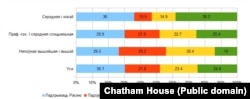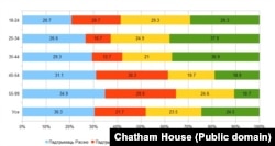 Адказы на пытаньне пра выбар для Беларусі падчас вайны прадстаўленыя на графіку са справаздачы Chatham House.