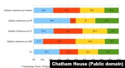 Кожны пяты з тых, хто добра ставіцца да Ўкраіны, нават падтрымлівае Расею ў вайне. Ня выключана, што ў дадзеным выпадку добрае стаўленьне да Ўкраіны — гэта добрае стаўленьне да «рускай Украіны», якую расейскія войскі «вызваляюць ад нацыстаў».