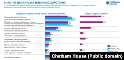 Падчас чэрвеньскага апытаньня гарадзкога насельніцтва Беларусі брытанскі дасьледчы цэнтар Chatham House трэці раз з пачатку поўнамаштабнай вайны ва Ўкраіне задаў рэспандэнтам пытаньне аб тым, як, на іх погляд, павінна была дзейнічаць Беларусь пасьля пачатку ваенных дзеяньняў.